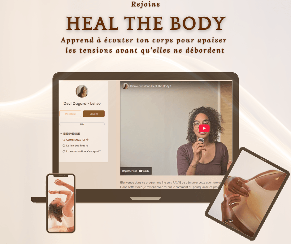 Rejoins la liste d'attente pour être informé de la sortie de Heal The Body, le programme qui t'aidera à renouer avec ton corps & tes émotions pour t'aimer comme tu es, avec moins de douleurs et plus d'énergie vitale !